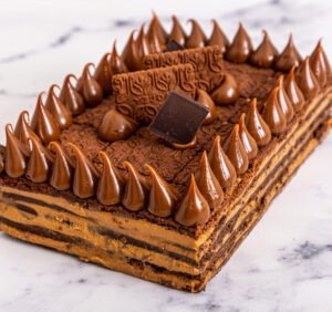 Galletitas chocolinas, mix de dulce de leche con queso crema y dulce de leche natural.