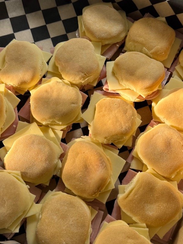 Mini figacitas rellenas de jamón y queso. Un bocado clásico, suave y rendidor, ideal para todo tipo de eventos.