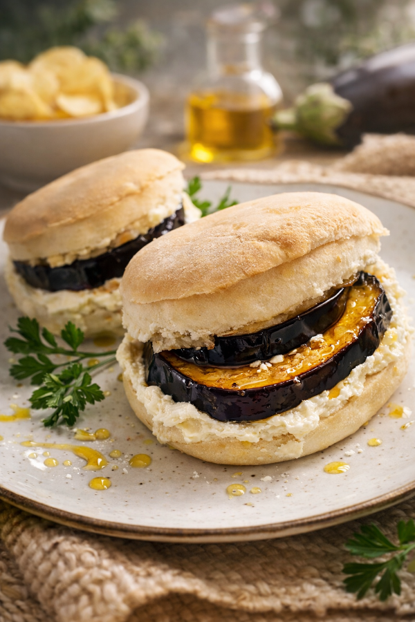 Las más ricas figacitas, rellenas de berenjena frita, y hummus cremoso. Un bocado vegetariano sofisticado, de sabores equilibrados y textura suave, ideal para mesas finger food