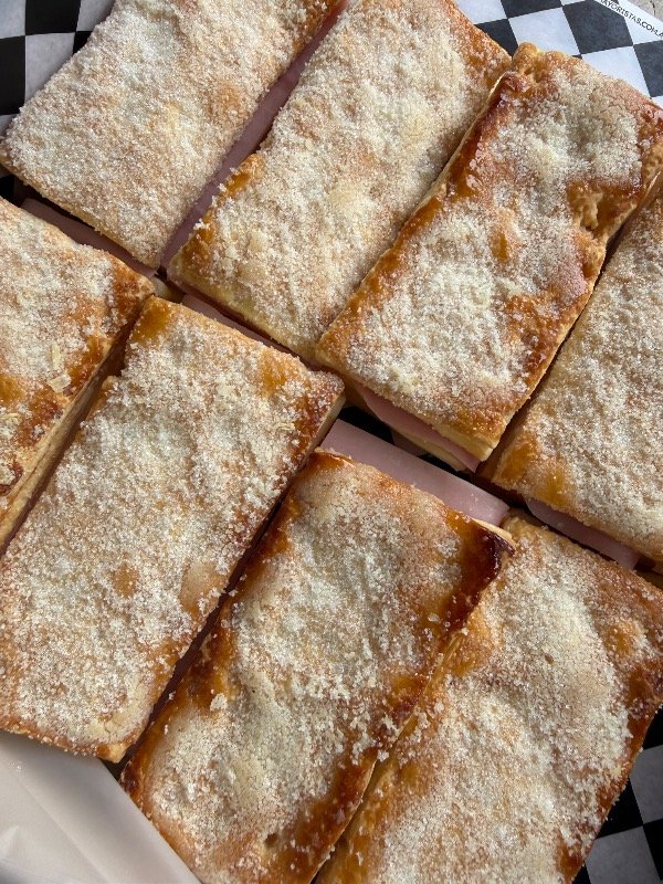 Masa hojaldrada crocante rellena con jamón y queso fundido. Un bocado clásico, dorado y tentador para mesas de finger food.