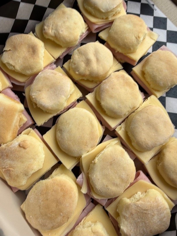 Mini figacitas rellenas de jamón y queso. Un bocado clásico, suave y rendidor, ideal para todo tipo de eventos.